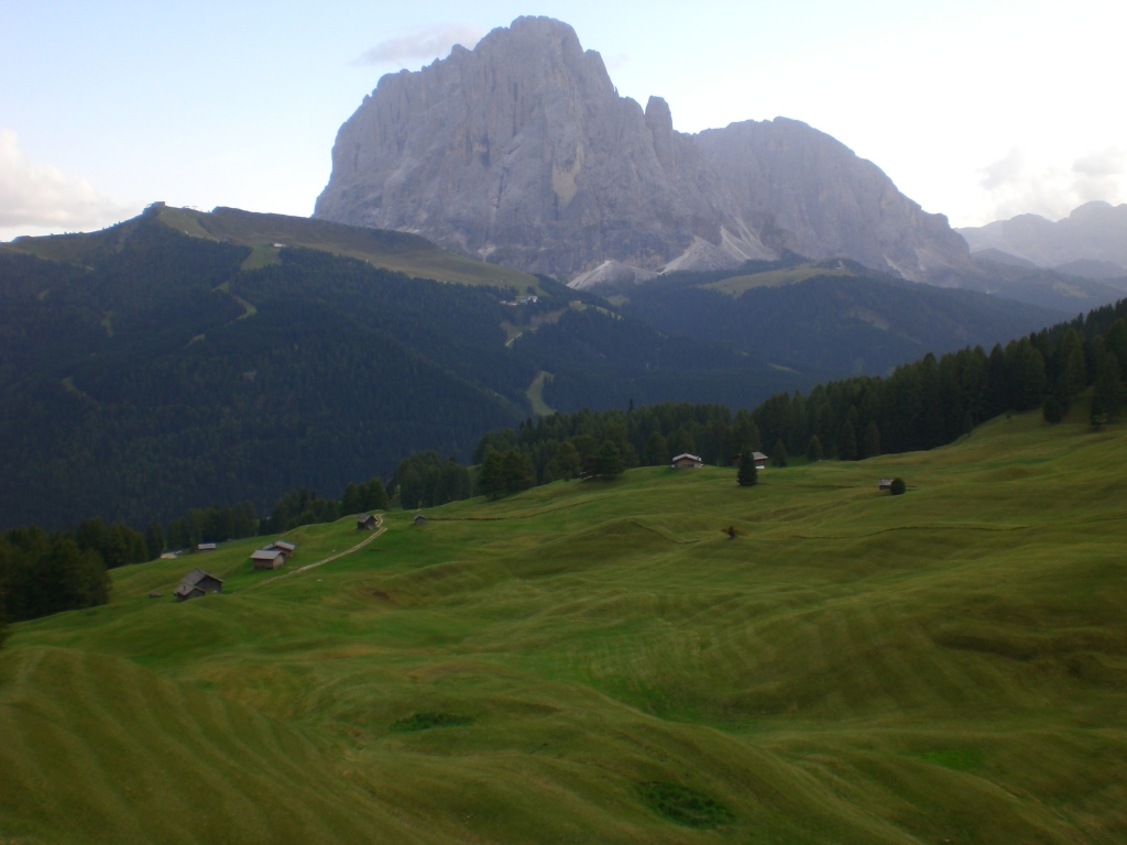 gepflegte Almen - im Hintergrund der Langkofel
